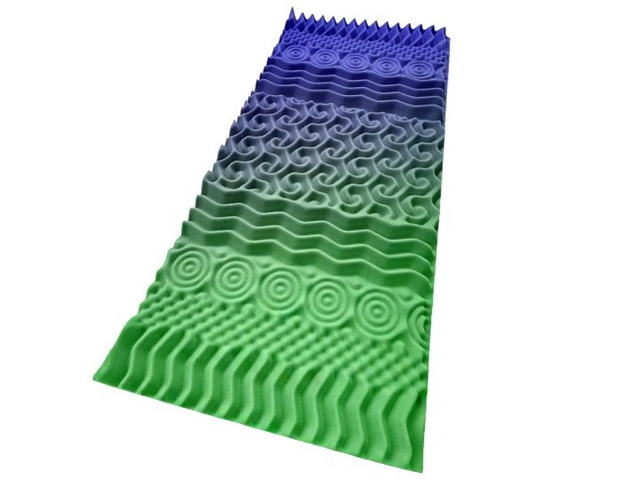 Spalviniai perėjimai putoje nėra atsitiktiniai. Jie vizualiai pabrėžia 9 zonų konstrukciją ir skirtingą medžiagos tankį ar elastingumą kiekvienoje zonoje.