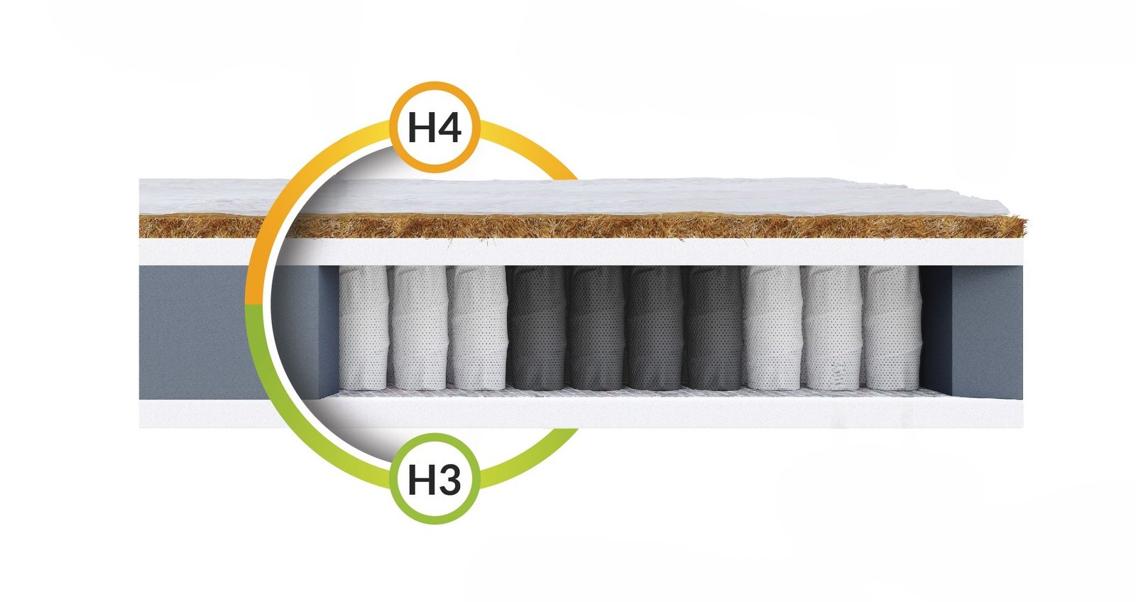 Čiužinys padalintas į 7 skirtingo tvirtumo zonas, pritaikytas šioms kūno dalims: galvai, pečiams, juosmeniui, dubeniui, šlaunims, blauzdoms ir pėdoms.