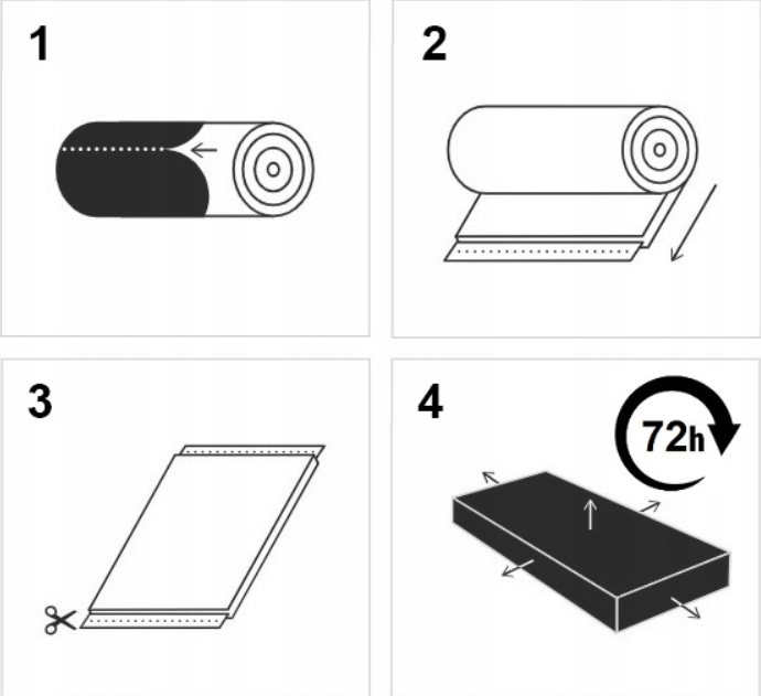1. Atsargiai nukirpkite apsauginę plėvelę, nepažeisdami čiužinio.