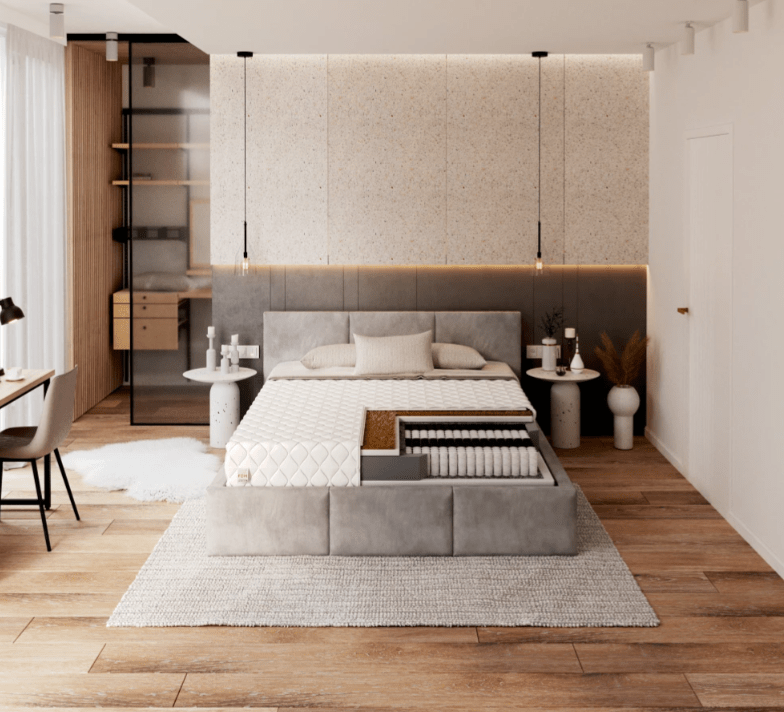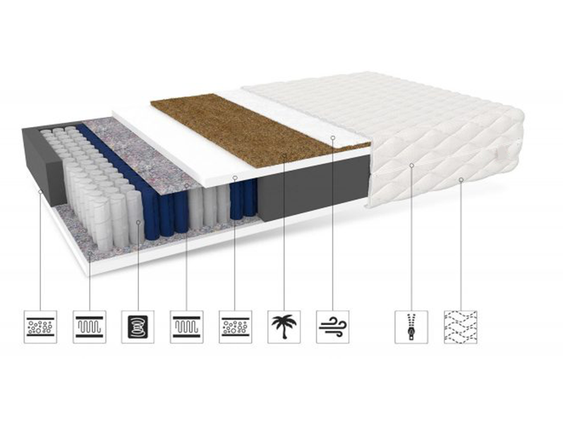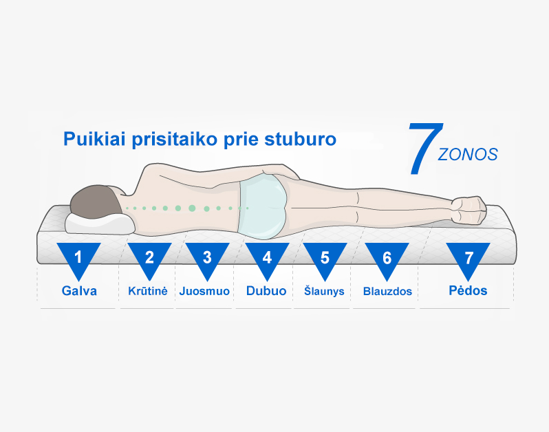 7 zonų kišeninės spyruoklės – spyruoklės padalija čiužinį į 7 zonas, kurių kiekviena turi atitinkamą prisitaiko prie kiekvienos kūno dalies. Spyruoklės veikia nepriklausomai viena nuo kito, todėl du šalia vienas kito miegantys žmonės nejaučia diskomforto dėl kito asmens judėjimo. Čiužinys taip pat puikiai tinka žmonėms, turintiems skirtingus kūno svorius, nes čiužinys neįlinksta miegančiojo pusėje, kai atsigula kitas žmogus.