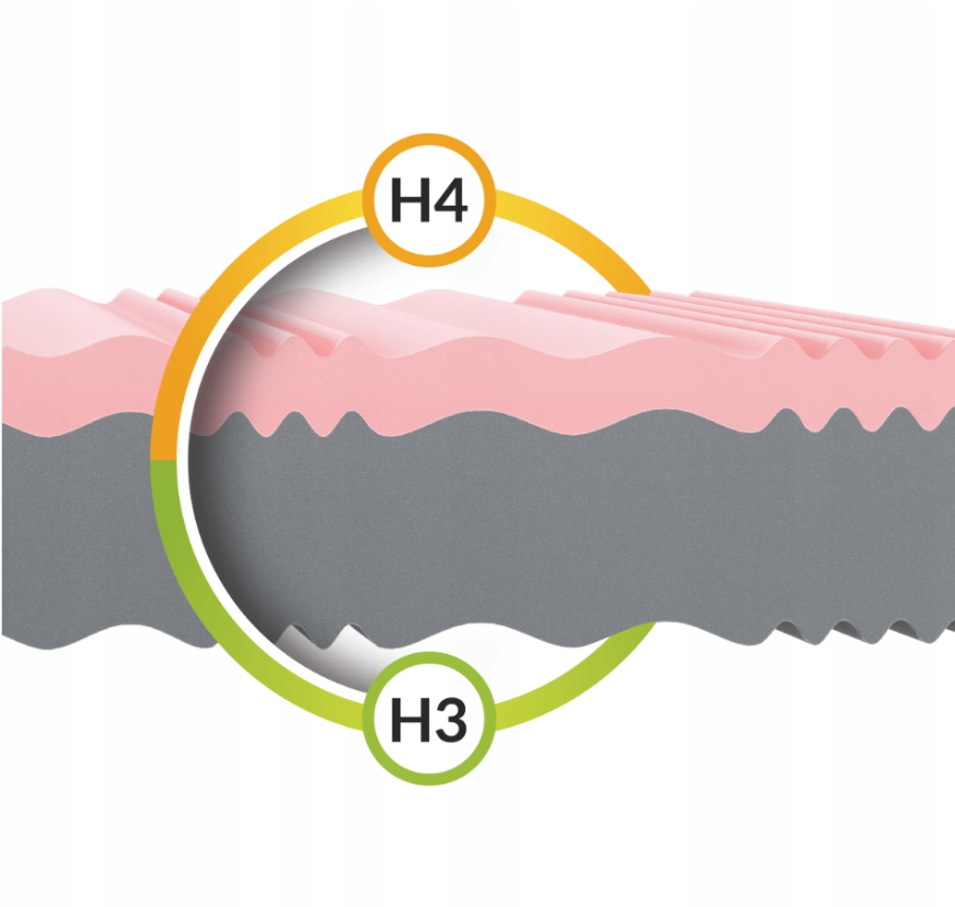 Dėl dvipusės konstrukcijos galima pasirinkti tinkamiausią kietumo lygį – H3 (vidutinio kietumo) arba H4 (kietą).