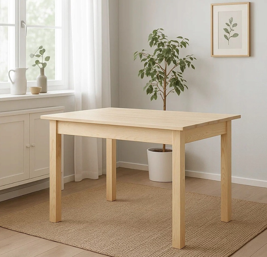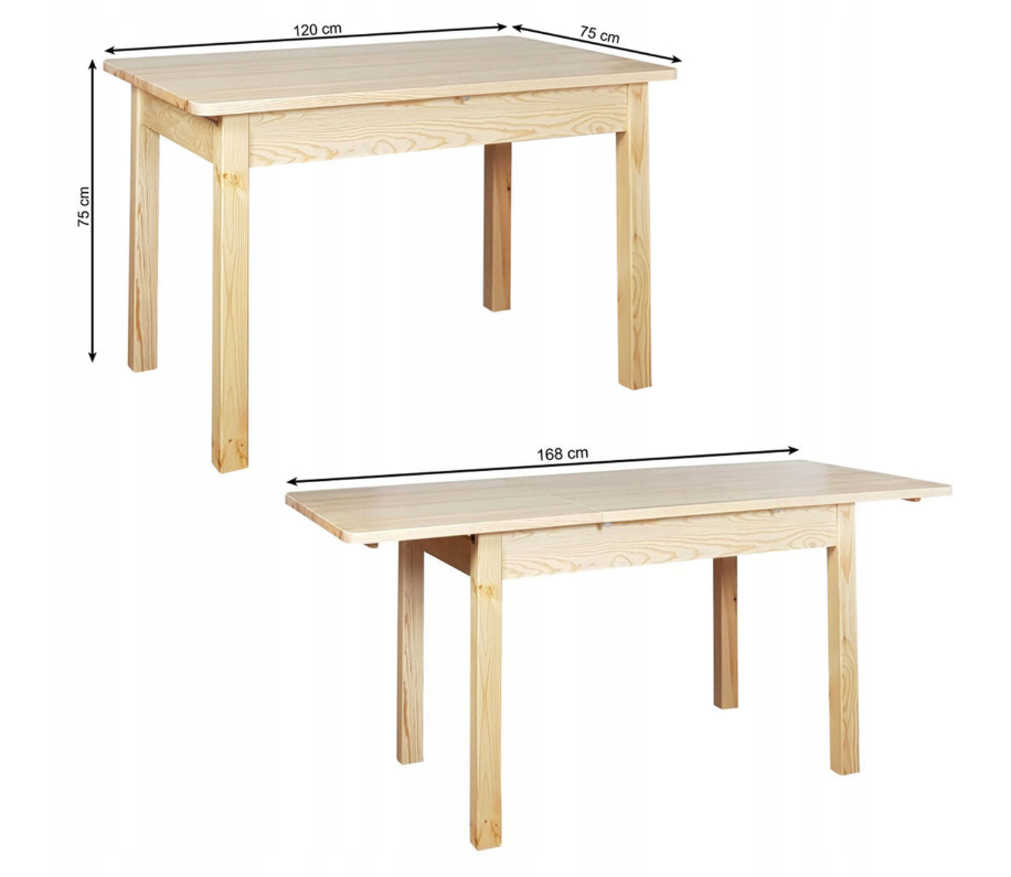 Iš pirmo žvilgsnio nedidelis, šis stalas išsiplečia nuo 120 iki 168 cm, todėl lengvai prisitaiko prie jūsų poreikių – tiek kasdieniams pietums, tiek šventiniams susitikimams. Pušies mediena pasižymi antistatinėmis savybėmis, todėl mažiau kaupia dulkes ir yra saugi vaikams bei alergiškiems žmonėms.