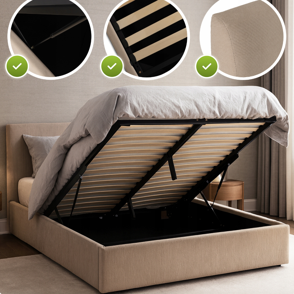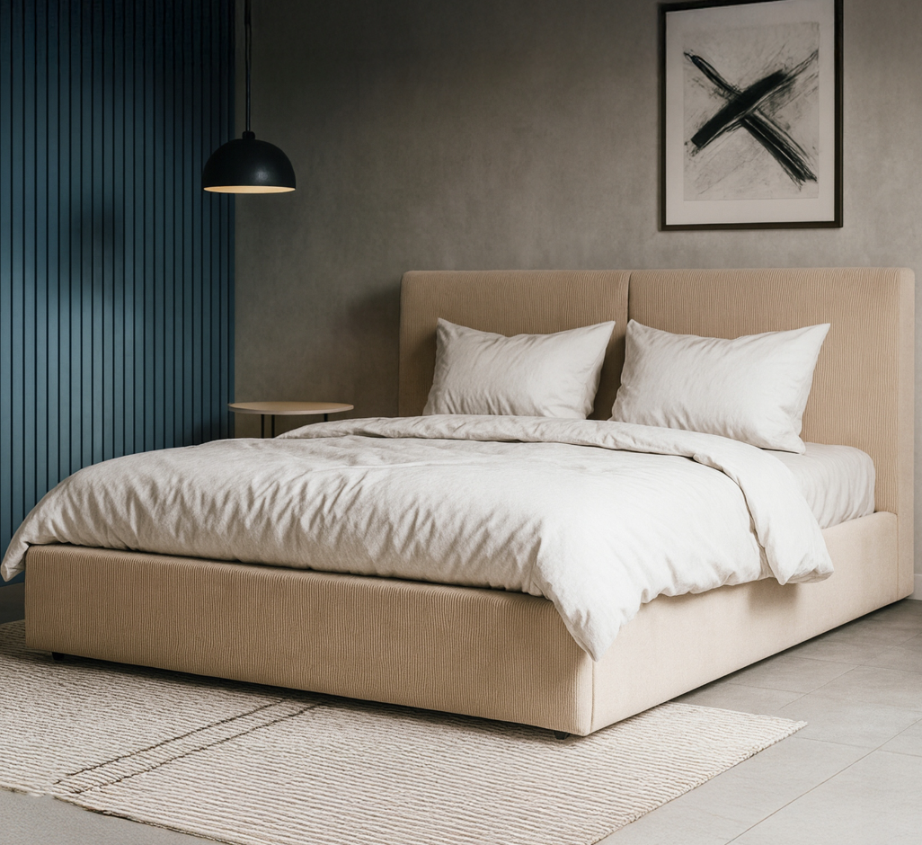 Lova RAMYBĖ – tai elegantiška, minkšta ir funkcionali lova, sukurta ramiam, kokybiškam poilsiui. Šiltas smėlio spalvos velveto apmušalas suteikia interjerui jaukumo ir subtilios prabangos, o apgalvota konstrukcija užtikrina stabilumą ir komfortą kiekvieną dieną.