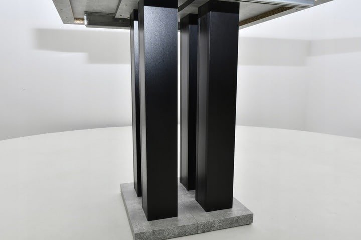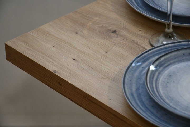 Stalviršis ir pagrindas yra pagaminti iš laminuotos plokštės , kuri yra idealus sprendimas kasdieniam naudojimui, dėl aukšto atsparumo mechaniniams pažeidimams, aukštai temperatūrai ir nešvarumams. Modernios, storos stalo kojos pagamintos iš abiejų pusių laminuotos plokštės. Stale yra 3 prailginimo įdėklai (3 x 40 cm), kurių pagalba mažas kavos stalas gali tapti dideliu šeimos pietų stalu. Stalą transformerį labai lengva prižiūrėti ir valyti. Valymui tinka, bet kuri neagresyvi priežiūros priemonė skirta laminuotai plokštei.