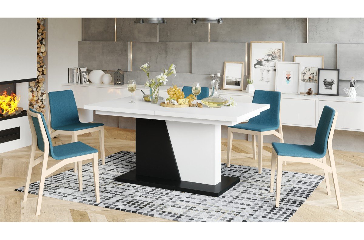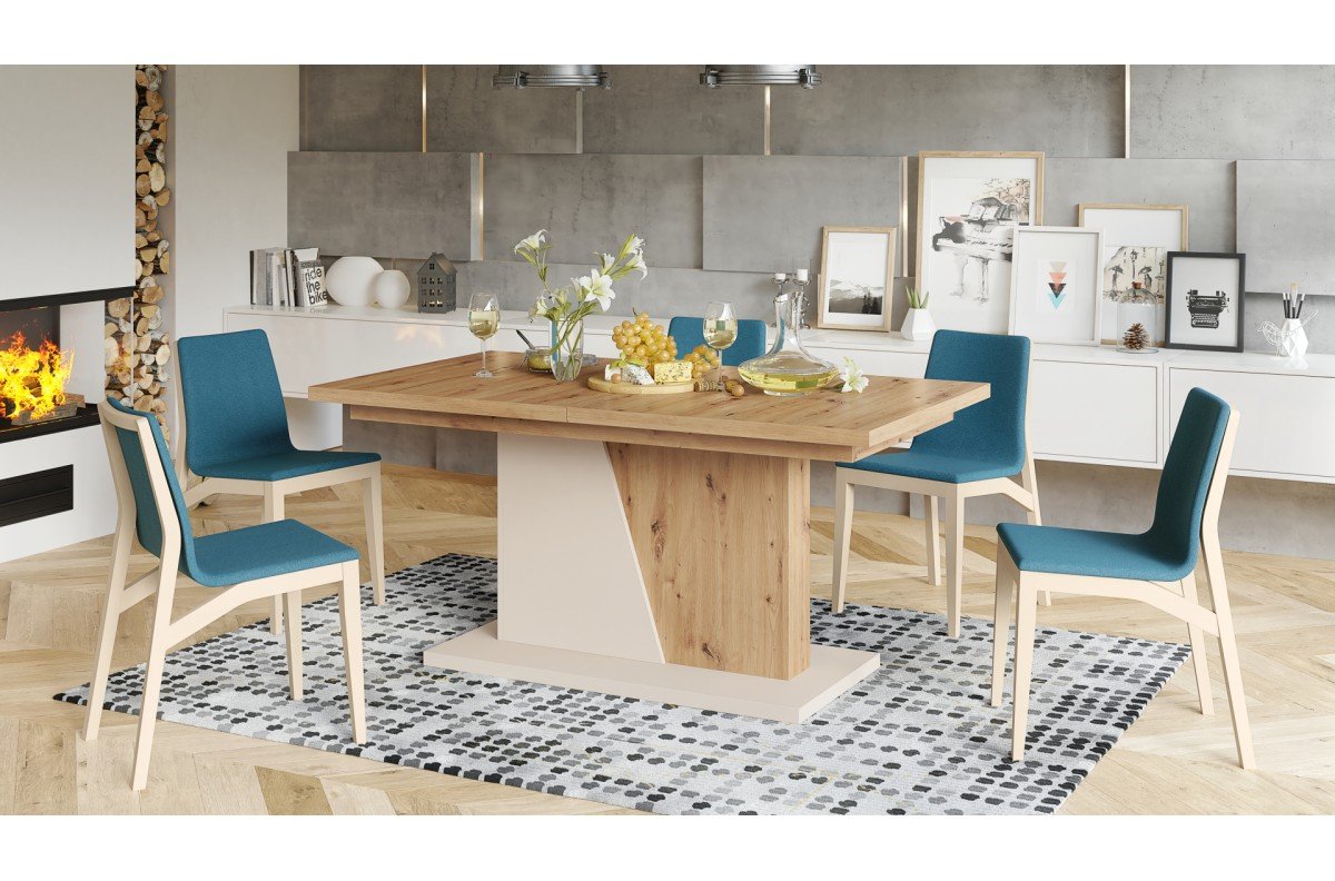 Modernus, proporcingas ir funkcionalus stalas ARON PLUS – skirtas erdviam valgomajam ar svetainei. Konstrukcija pagaminta iš kruopščiai atrinktos laminuotos medžio drožlių plokštės (SWISS KRONO / KRONOSPAN), užtikrinančios patvarumą ir atsparumą kasdieniam naudojimui.