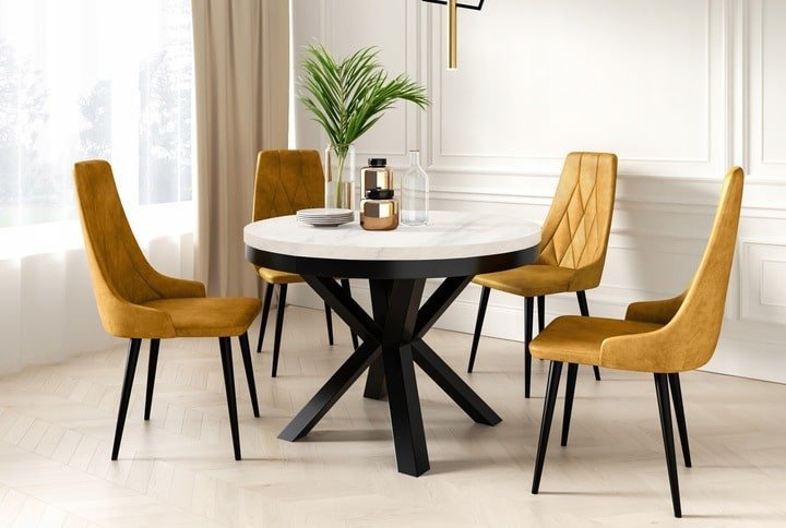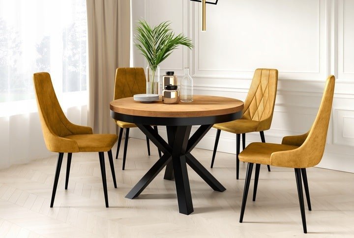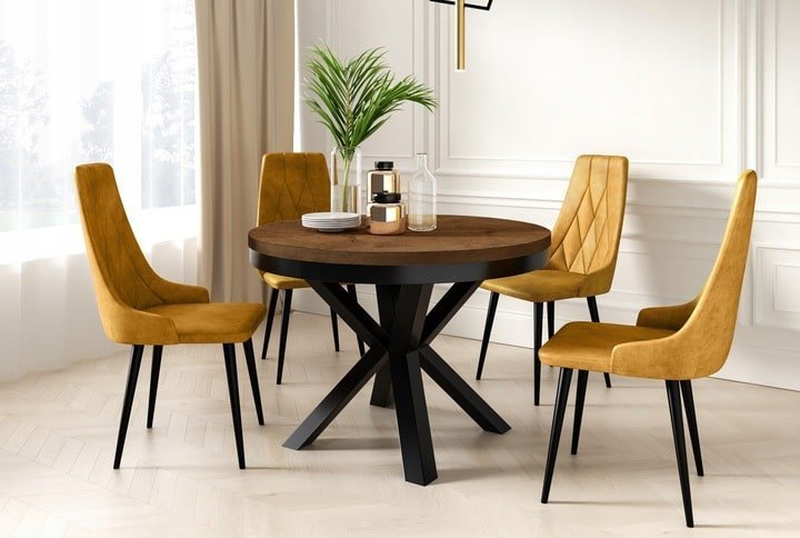 Stalviršis yra pagamintas iš 3.6 cm laminuotos plokštės , kuri yra idealus sprendimas kasdieniam naudojimui, dėl aukšto atsparumo mechaniniams pažeidimams, aukštai temperatūrai ir nešvarumams. Stalo pagrindas pagamintas iš milteliniu būdu dengto metalo. Stale yra 2 prailginimo įdėklai (2 x 40 cm), kurių pagalba mažas kavos stalas gali tapti dideliu šeimos pietų stalu.