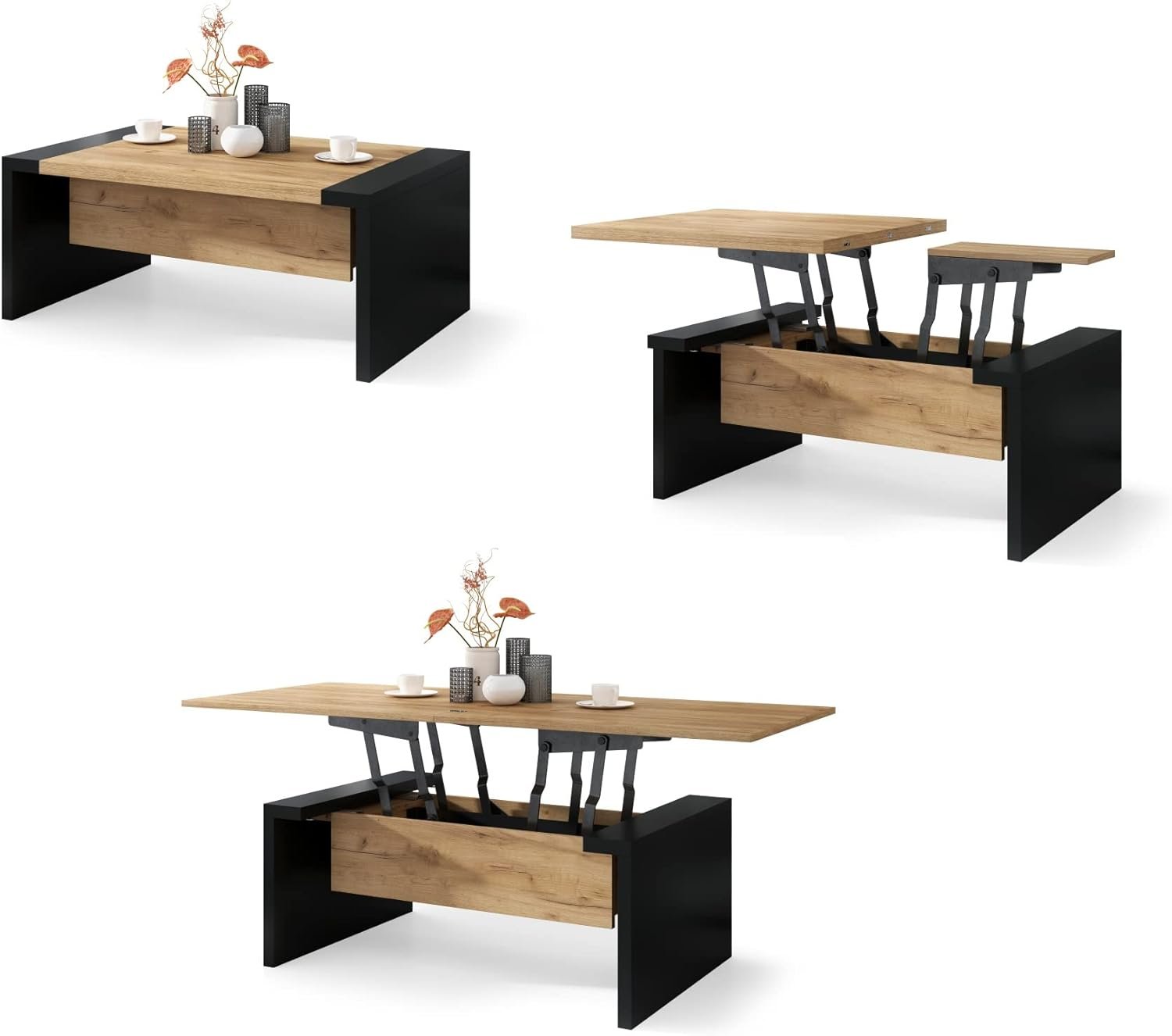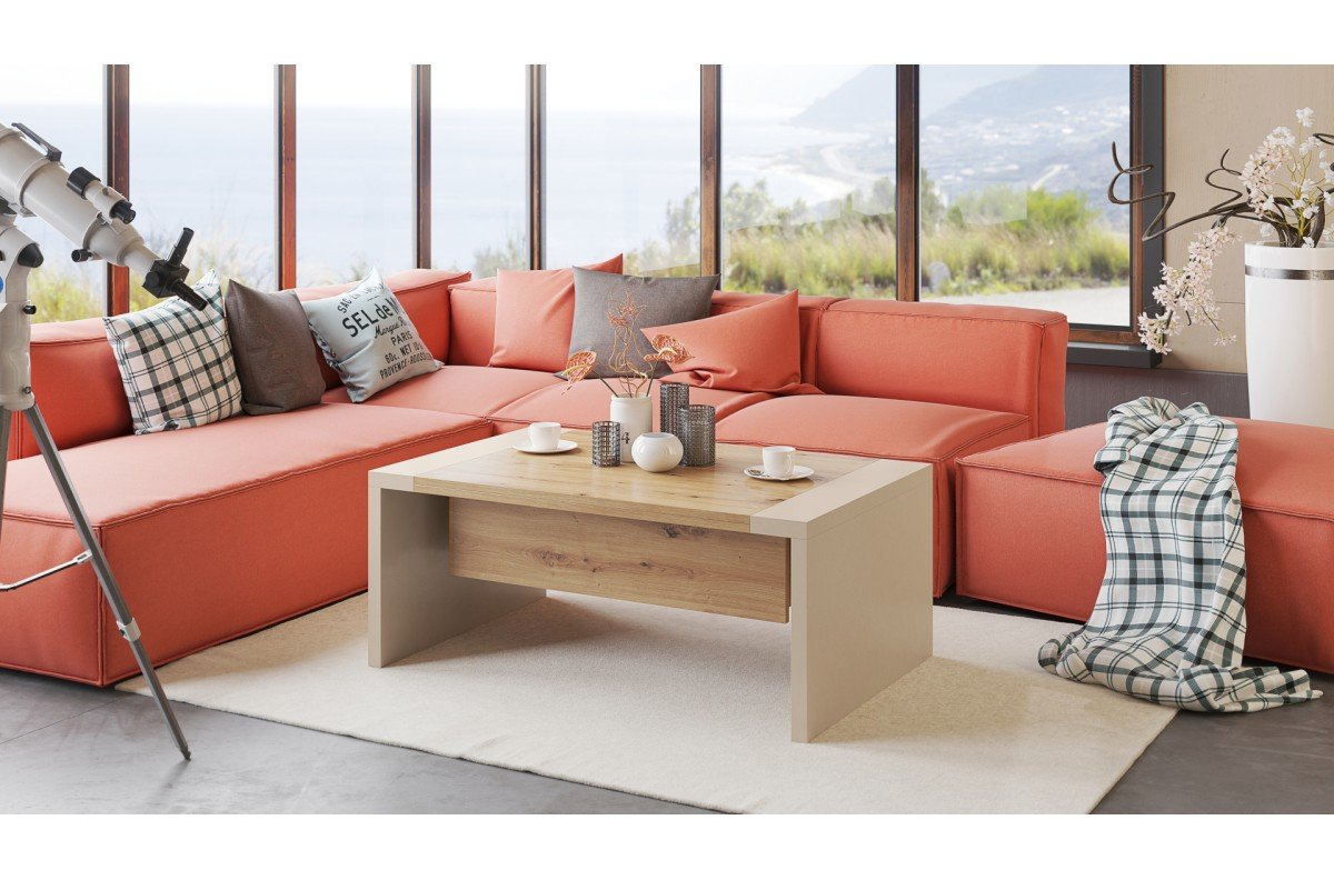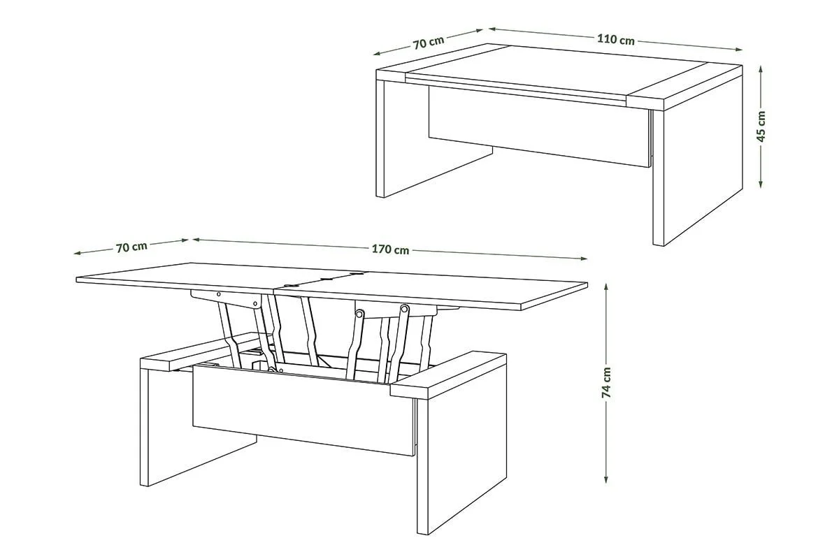 • Iš 110 cm kavos staliuko transformuojamas į 170 cm ilgio valgomojo stalą.