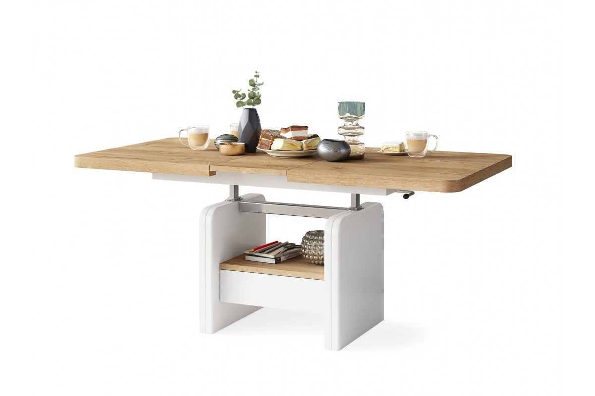 Stalas pagamintas iš 18 mm storio matinės medžio drožlių plokštės (laminuotos iš abiejų pusių) ir dvigubos 28 mm storio dažytos MDF plokštės (kojos). Visa apdaila su 2 mm ABS briauna. Be to, stalviršis turi iki 36 mm storintą šoną bei 2 įdėklus, kuriais galite keisti stalo ilgį. Aukštos kokybės milteliniu metodu dengta stalo kėlimo įranga užtikrina lengvą ir patogų stalviršio išskleidimą. Stalą transformerį labai lengva prižiūrėti ir valyti. Valymui tinka, bet kuri neagresyvi priežiūros priemonė skirta laminuotai plokštei.