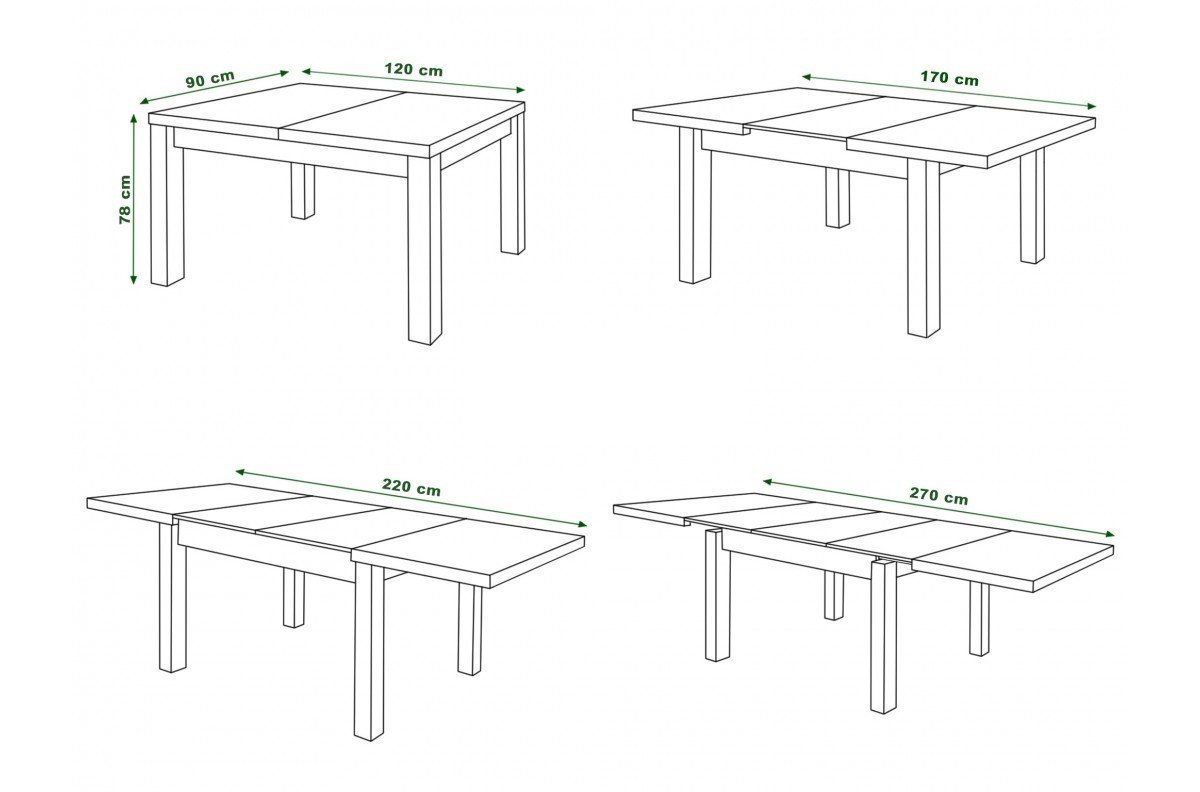 Stalas transformeris pagamintas iš aukštos kokybės medžio drožlių plokštės ir padengtas kokybiška laminuota plėvele kuri neleis atsirasti įbrėžimams. Prie stalo gali susėsti net 10-12 žmonių. Pats stalas turi 4 ilgius. Ilgiausias siekia net 2 metrus 70 centimetrų. Valymui tinka, bet kuri neagresyvi priežiūros priemonė skirta laminuotai plokštei.