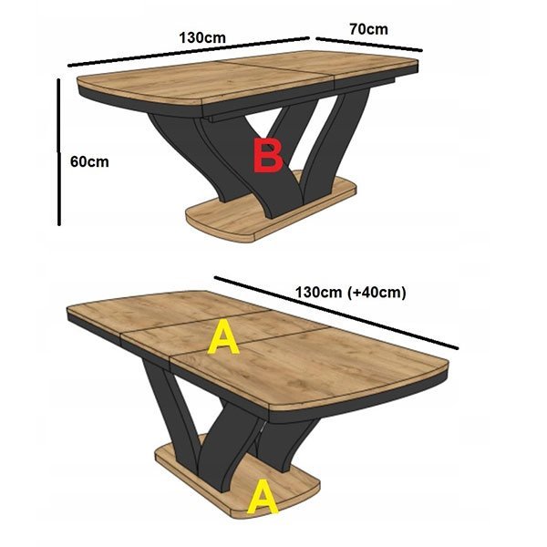 Stalas transformeris pagamintas iš laminuotos plokštės, stalviršis storintas iki 54 mm. Stalviršio kraštai apdailinti  PVC kraštu,  apsaugančiu elementus nuo mechaninių pažeidimų. Stalviršis išskleidžiamas ant  rutulinių kreiptuvų. Stalą transformerį labai lengva prižiūrėti ir valyti. Valymui tinka, bet kuri neagresyvi priežiūros priemonė skirta laminuotai plokštei.